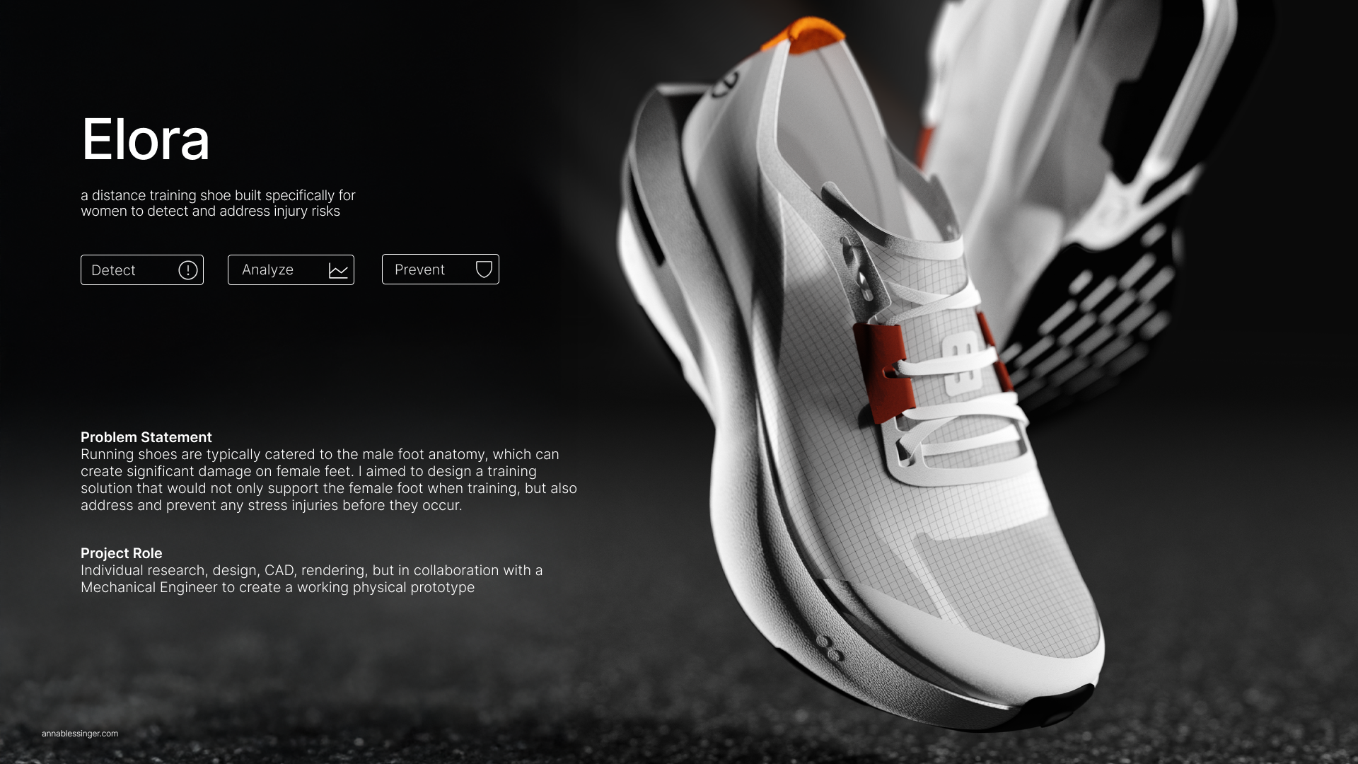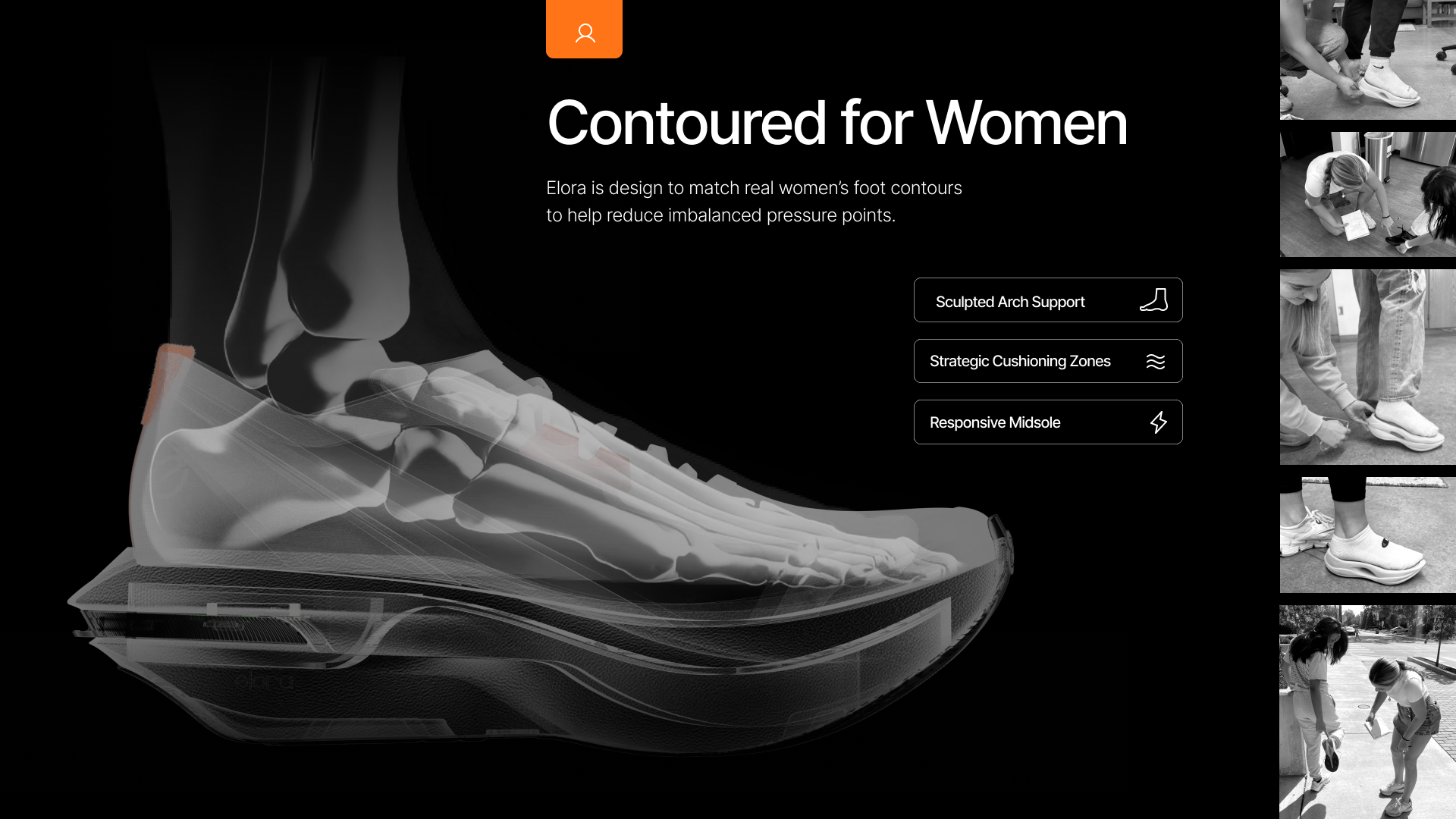 Design Intent: Marathon shoes built specifically for women—contoured to their foot shape and equipped with internal technology to detect injury risks before they happen.